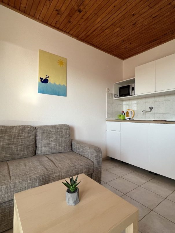 100m od prečudovite plaže in kristalno čistega morja vam, preko poletja in jeseni, nudimo nočitve v naših štirih apartmajih, v senčnem zavetju prečudovitih oljk.