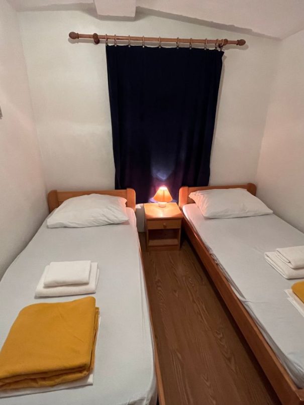 Postelje: 1 zakonska postelja, 2 enojni postelji