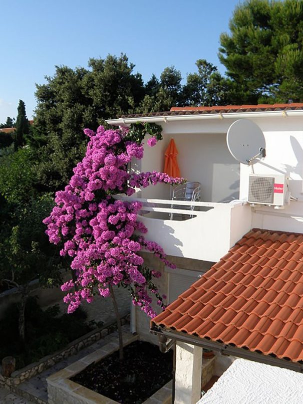 Dvosobni apartma v 1. nadstropju z ložo in teraso v zavetju čudovite bugenvilije
